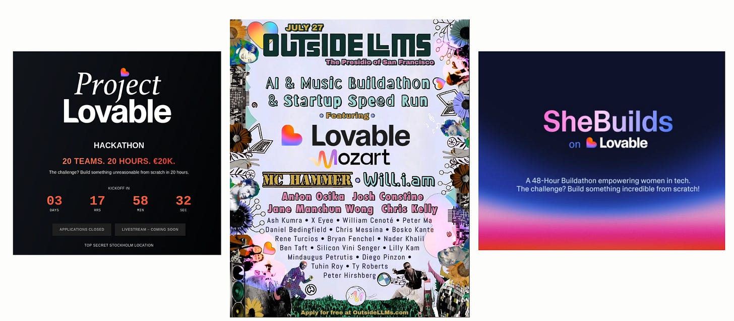 Almost any successful marketing department is constantly featuring customer stories. Who better to sell the product than happy customers with real proof. So leading with customers is not an innovative tactic, per se, but is one of the central aspects of Lovable’s social, YouTube, hackathons, community, press, speaking and template libraries. Customers, customers, customers.