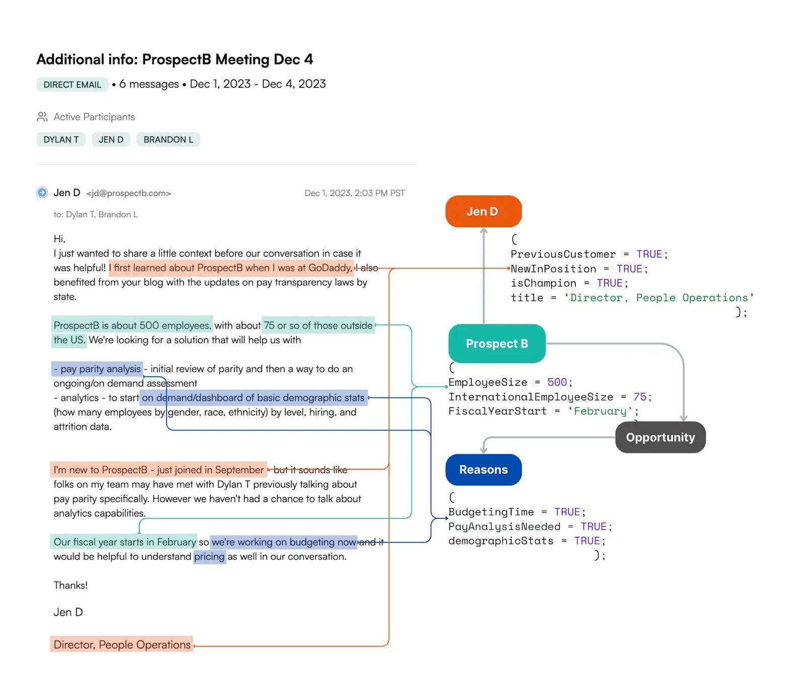 Conversation intelligence extracts signals from calls, emails, and meetings. The “why” behind a demo request often lives in buyer language, not UTM parameters.