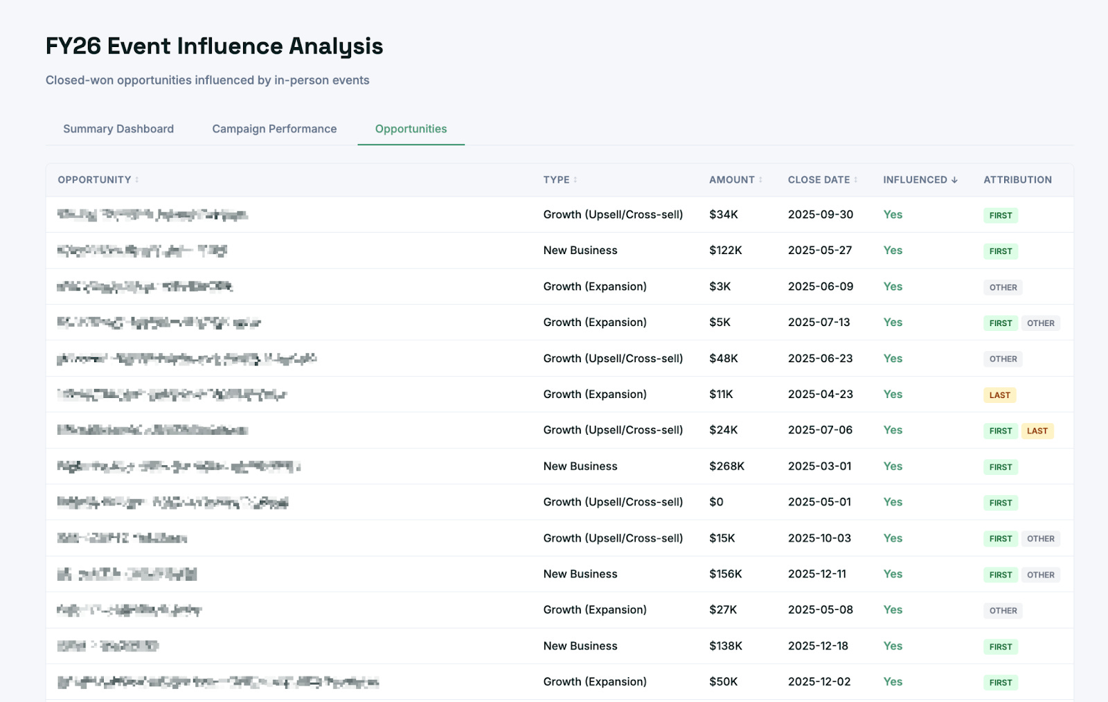 Custom, smart insights for every org: Traditional rules-based models often get it wrong. But you can ask AI to understand what type of influence a campaign actually had on an opportunity, and whether it was the first meaningful interaction with the buying group. AI does this much better than rules-based systems because it won’t get bogged down by edge cases, like someone visiting the website during an event before the attendee list was uploaded, which would make direct traffic look like the first touch.
