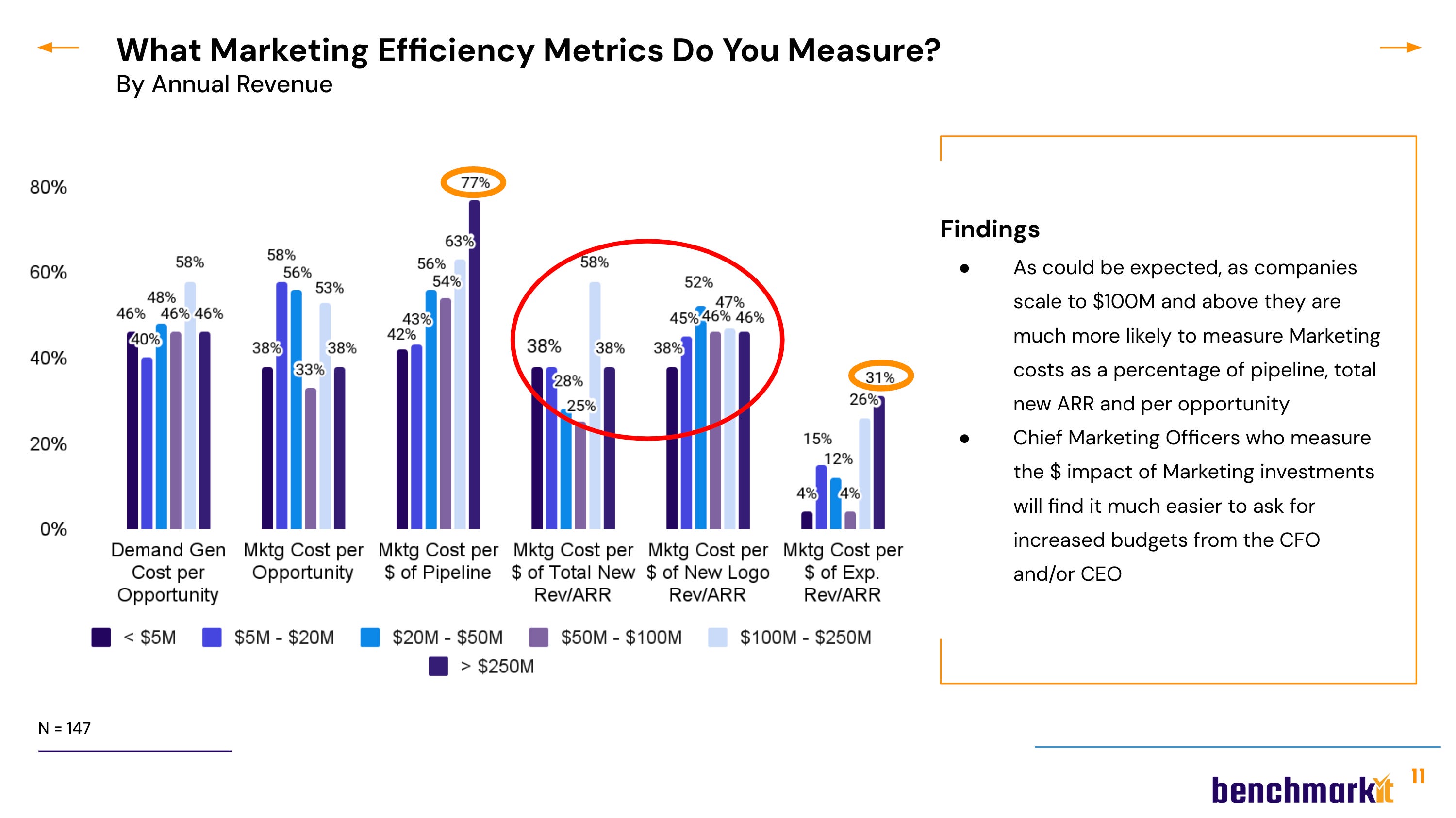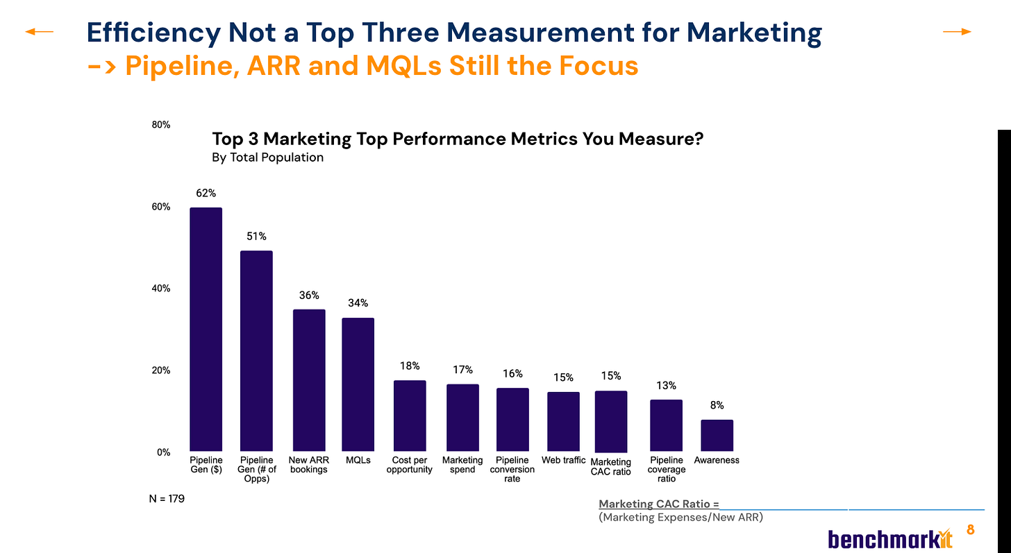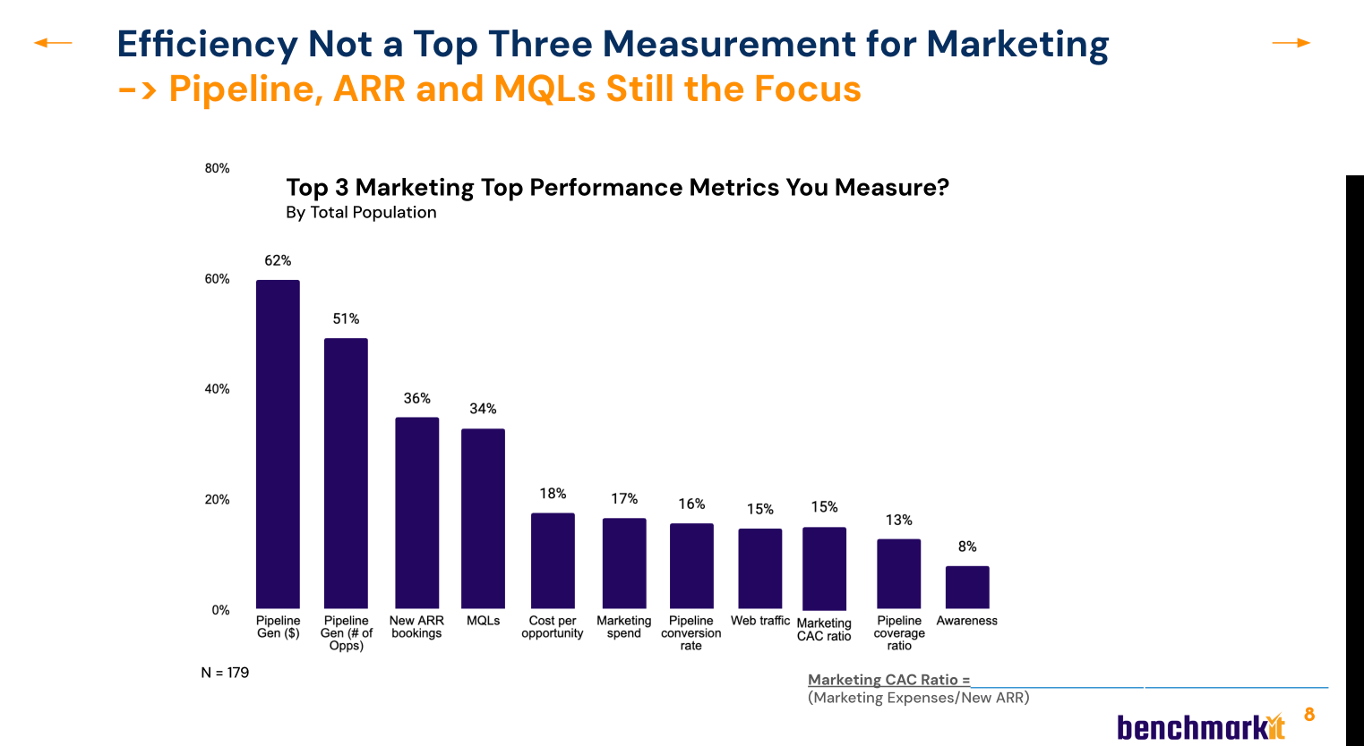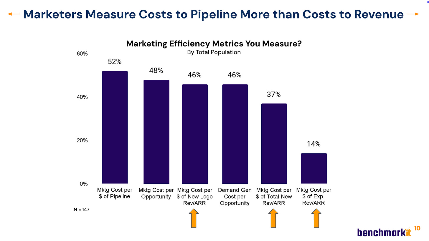 While efficiency metrics weren’t top 3, of the folks measuring cost, most were measuring it against pipeline or opportunity, not revenue: